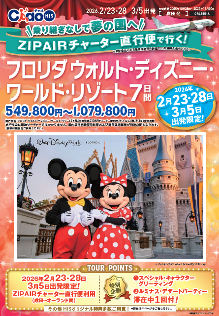 ZIPAIRチャーターで行くオーランド7日間商品発売開始!!